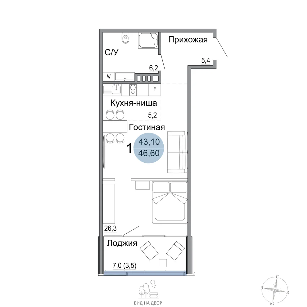 46.6 м2