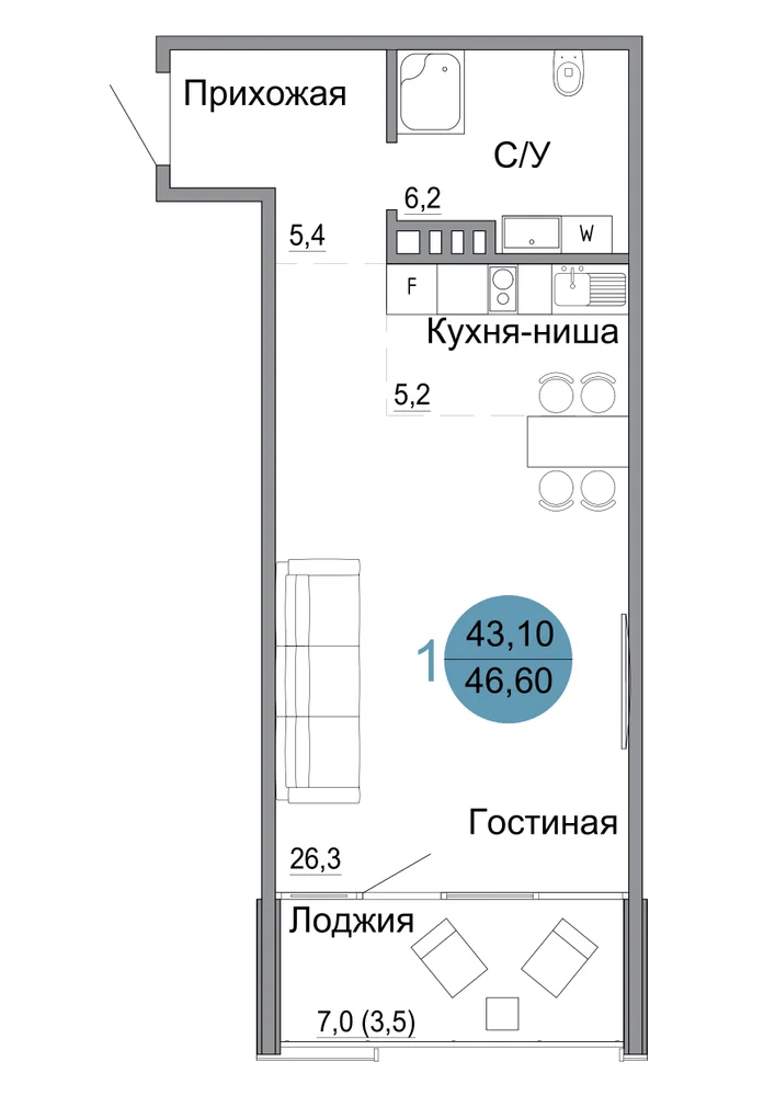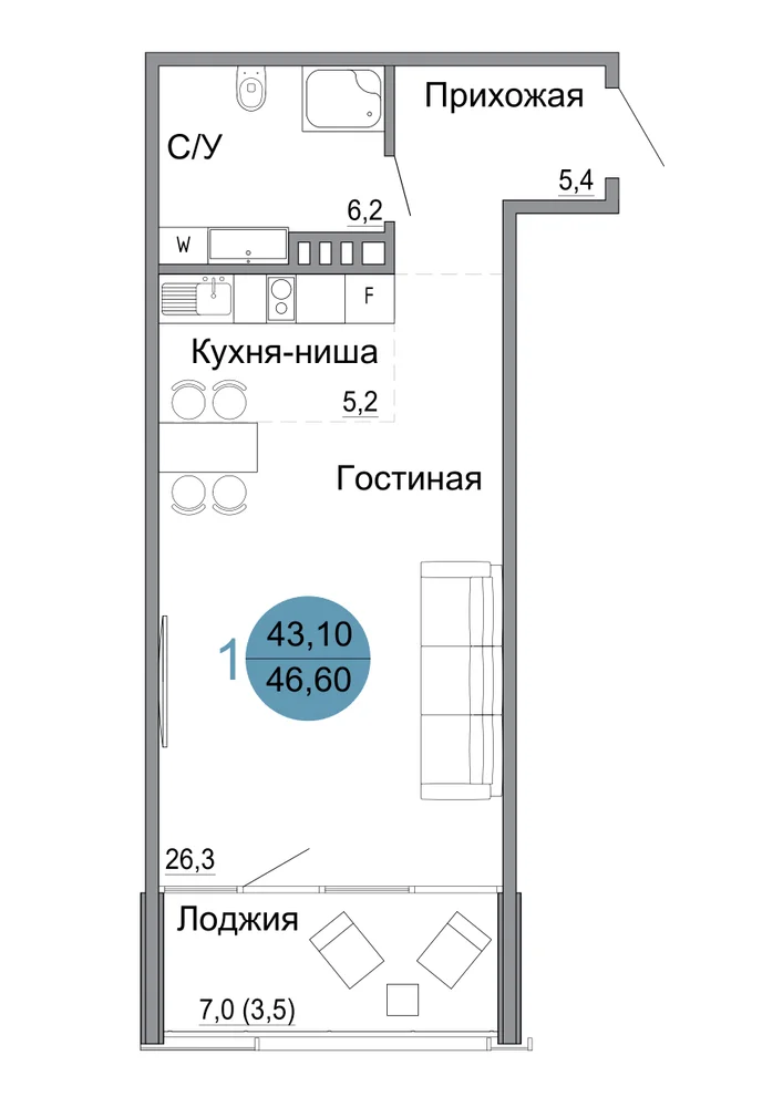 46.6 м2