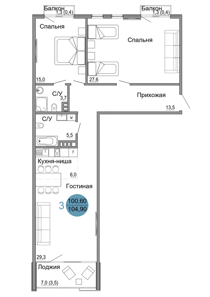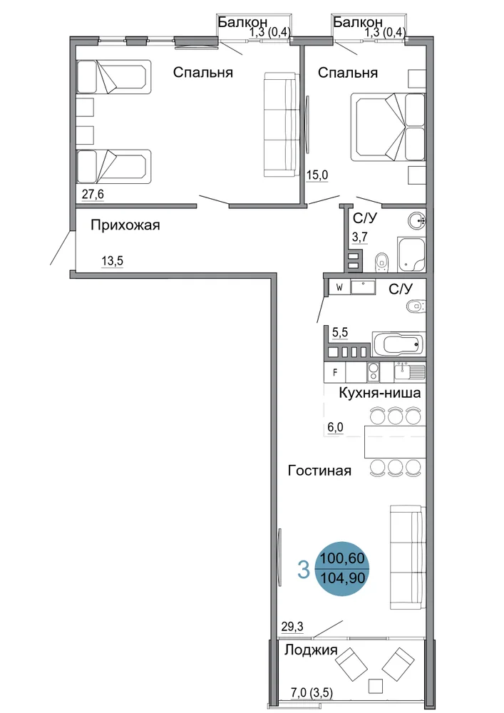 104.9 м2